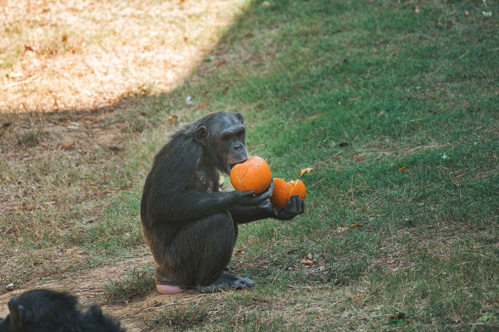 This week, a Halloween-themed surprise brought the pant-hoots in the form of pumpkin and “trick-or-treat” bag enrichment. The small pie pumpkins were the perfect size to play with, smash, and enjoy, while jack-o-lantern faced goodie bags were packed with healthy snacks and treats.