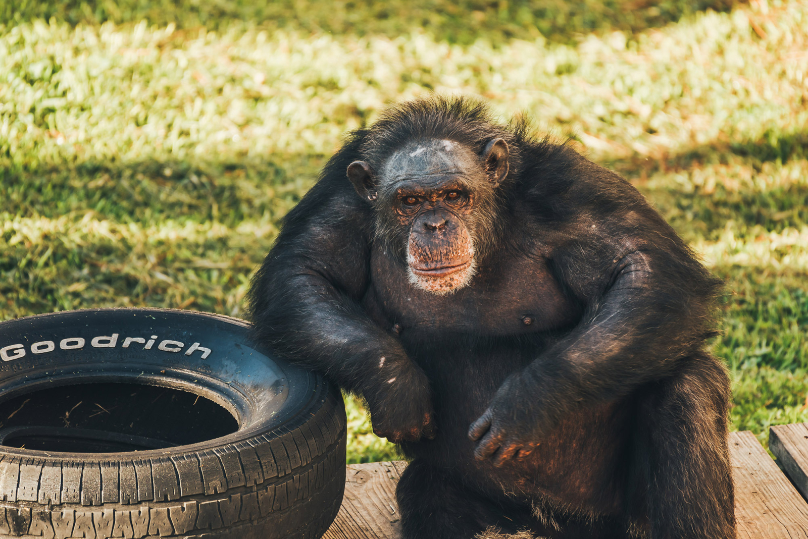 When they’re done causing mischief indoors, it’s time to move outside. Large-scale outdoor structures are a central part of the chimps’ outdoor play areas – they’re frequent social hotspots, and a great place for the chimps to lounge in the sun or get some exercise climbing and exploring the multiple levels of the structure…they’re also high on the list of the most frequently repaired items at the sanctuary.