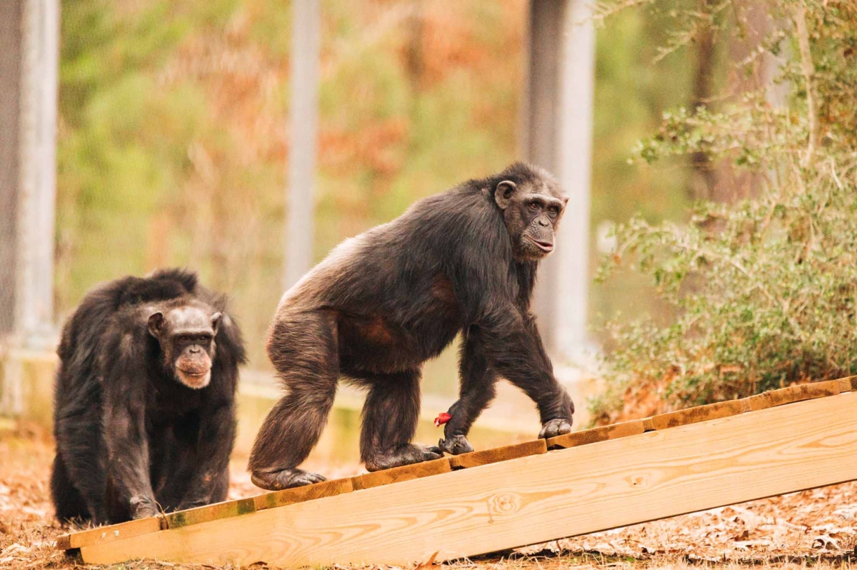 Fearless tough girl Heather is the quintessential nosy neighbor, and she never passes up an opportunity to remind others who they’re dealing with. She loves to show off with physical displays, especially when new groups move into the neighborhood, and she regularly takes a stroll down to the moat area of her habitat, just to keep an eye on things. When she’s not on neighborhood watch, she’s a big foodie, and despite the ruckus she might cause with fellow chimps, she does not tend to cause issues for her caregivers (maybe because they’re delivering all her favorite treats?).