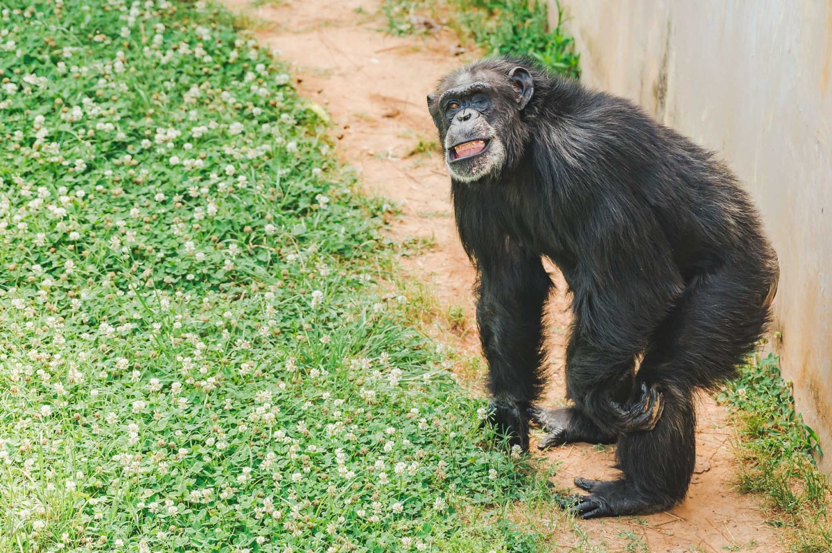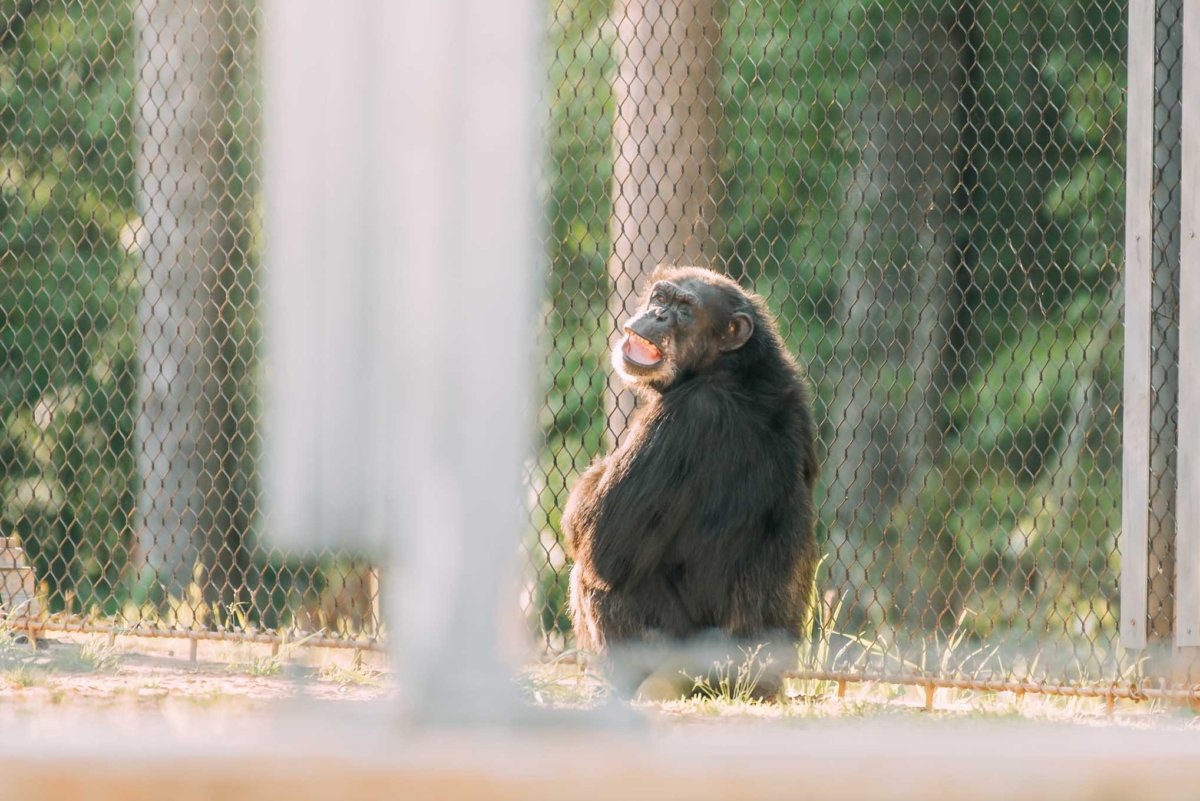 Crystal is a girl who’s always on the move, and she wants you to move with her! She absolutely loves Gympanzee and never misses and opportunity to exercise with her caregivers by going on walks together around the perimeter of her play yard. She’s such a Gympanzee super star, she’s gotten fit and improved her mobility over the past several years thanks to her dedication. She also loves the rubber boots her caregivers wear, and insists on touching and playing with them as her reward. Although Crystal came to the sanctuary with just one eye, it doesn’t slow her down whatsoever. She’s a one-eyed beauty with a heart of gold.
