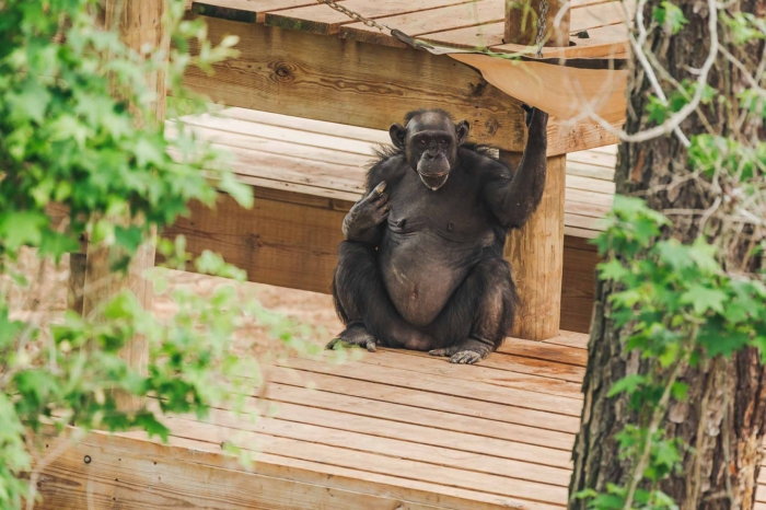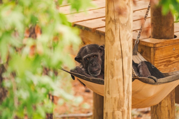 The chimpanzees are retired from medical research and no invasive studies are ever conducted at Chimp Haven. The primary goal at Chimp Haven is to ensure each chimpanzee is experiencing the best quality of life and has an enriching retirement at the sanctuary. Our staff conduct behavioral observations of the chimpanzees to monitor their wellbeing and ensure successful social integration. More than 400 chimpanzees have been integrated into social groups at the sanctuary using these methods based on scientific principles and processes.