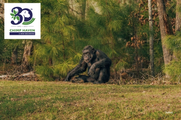 Currently, the team is working to implement several solutions for monitoring heart health in the chimps. Like in humans, cardiac issues are common in chimpanzees, and Chimp Haven is committed to providing our residents with exceptional medical care. This includes monitoring their health through our Positive Reinforcement Training (PRT) program. PRT gives our team a lot of opportunities to practice creative problem solving. With roughly 300 chimps in our care, we’re lucky that our team is well versed in the art of chimpanzee creativity.