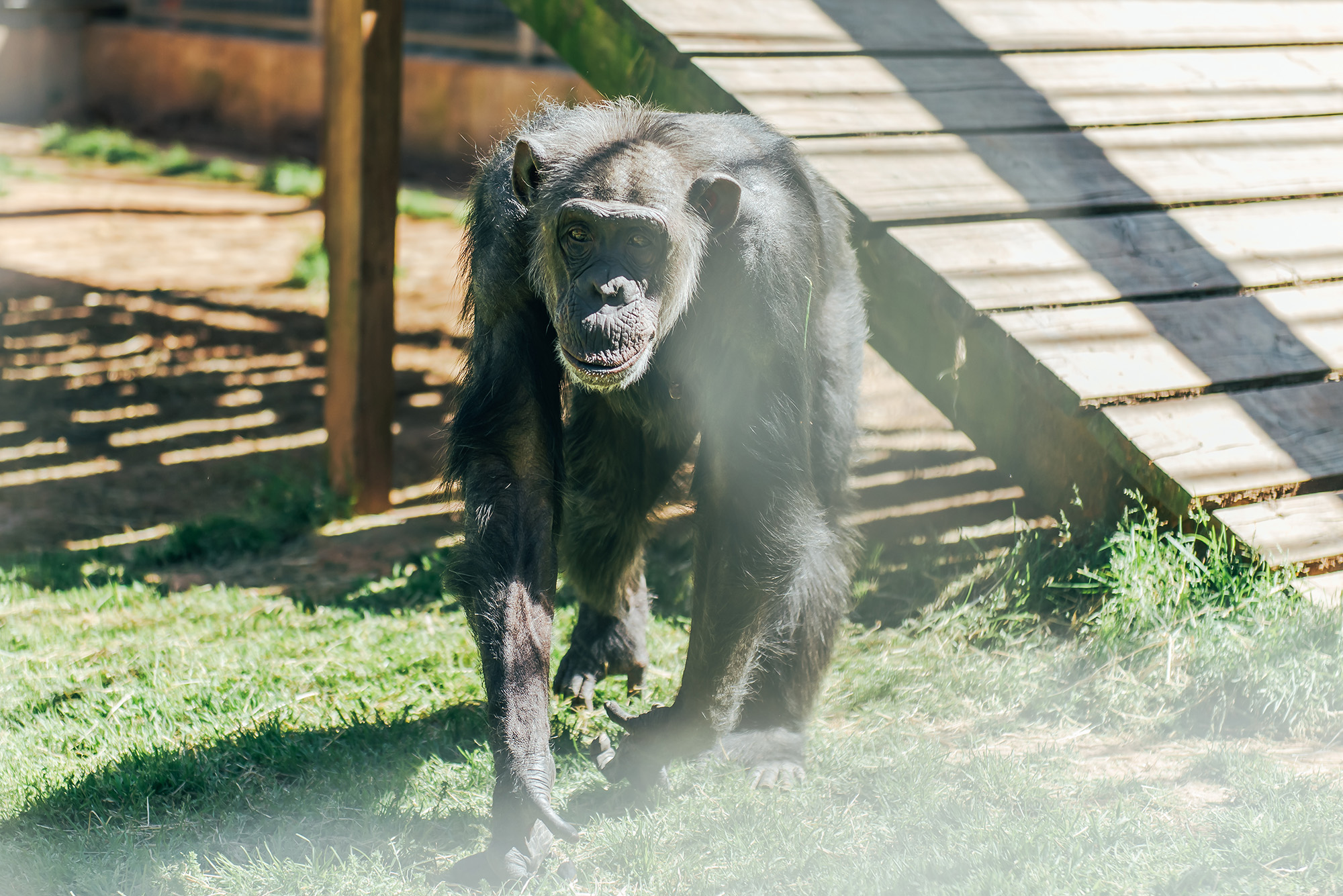 Many years of both human and chimpanzee lives have been spent trying to establish a common form of communication, whether through sign language, lexigrams, or crude attempts at spoken words. While at Chimp Haven our goal is to allow the chimps to just be chimps, we still communicate in a sense through positive reinforcement training (PRT). PRT invites the chimps to learn behaviors which assist with their own care, like presenting a body part or their veterinary team to examine. From the outside it seems straightforward enough, teaching an animal to sit, give hand, foot, or ear when asked – at its heart you gain so much more than that.