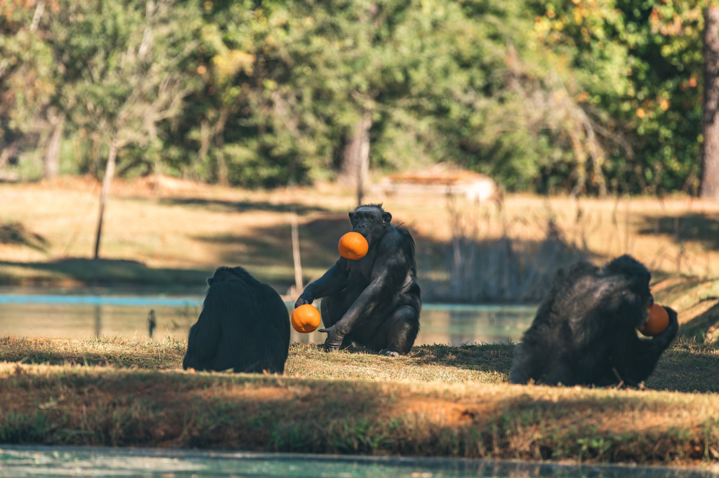 Below are just a few of the chimps enjoying their fall enrichment, made possible by friends and supporters like you. Thank you for giving them a wonderful life at Chimp Haven!