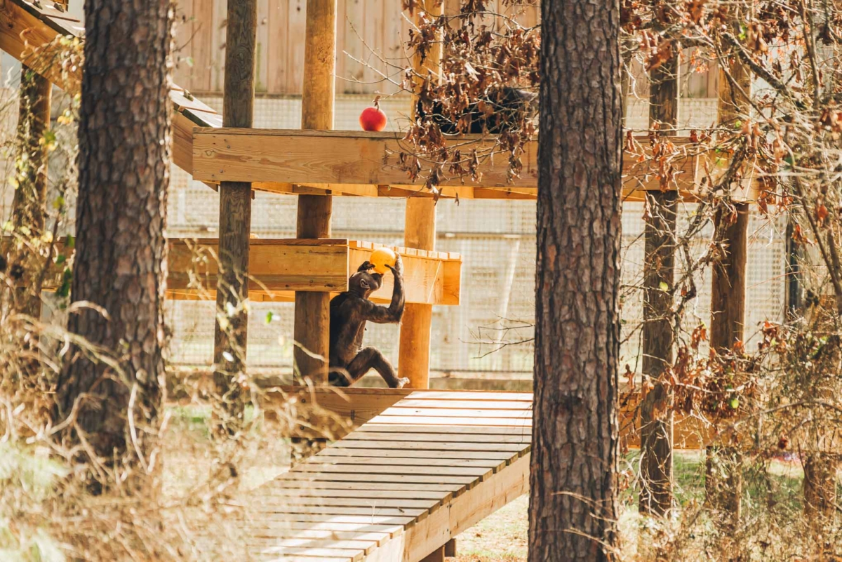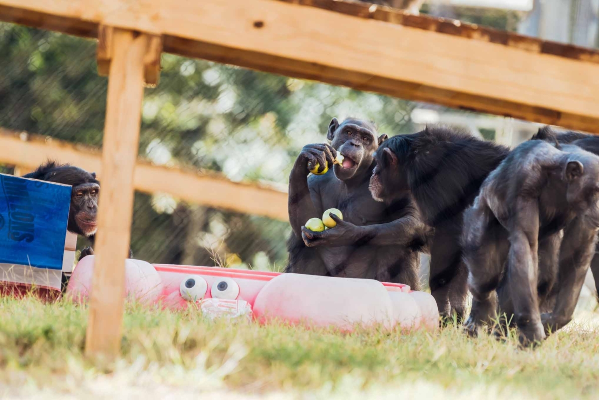 With her no-nonsense approach to getting what she wants and a group of strong ladies to back her up, it’s no wonder staff jokes that Slim should run for president. Slim enjoys the simple things in life and her role as a feminist icon comes with certain privileges – she enjoys stealing things from fellow chimps, for example, who always let her get away with it, and making things a little bit difficult for her caregivers, just for fun. Although her status affords her certain advantages, at the end of the day, she’s just high-ranking lady who wants to chill outside…until she senses an opportunity to stir up some more trouble, that is.