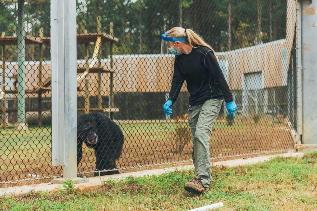 Crystal is a girl who’s always on the move, and she wants you to move with her! She absolutely loves Gympanzee and never misses and opportunity to exercise with her caregivers by going on walks together around the perimeter of her play yard. She’s such a Gympanzee super star, she’s gotten fit and improved her mobility over the past several years thanks to her dedication. She also loves the rubber boots her caregivers wear, and insists on touching and playing with them as her reward. Although Crystal came to the sanctuary with just one eye, it doesn’t slow her down whatsoever. She’s a one-eyed beauty with a heart of gold.